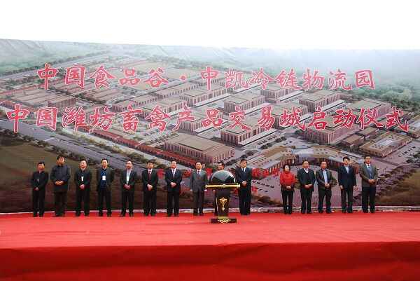11月8日,中國食品谷中凱冷鏈物流園中國濰坊畜禽產(chǎn)品交易城項目啟用儀式現(xiàn)場。